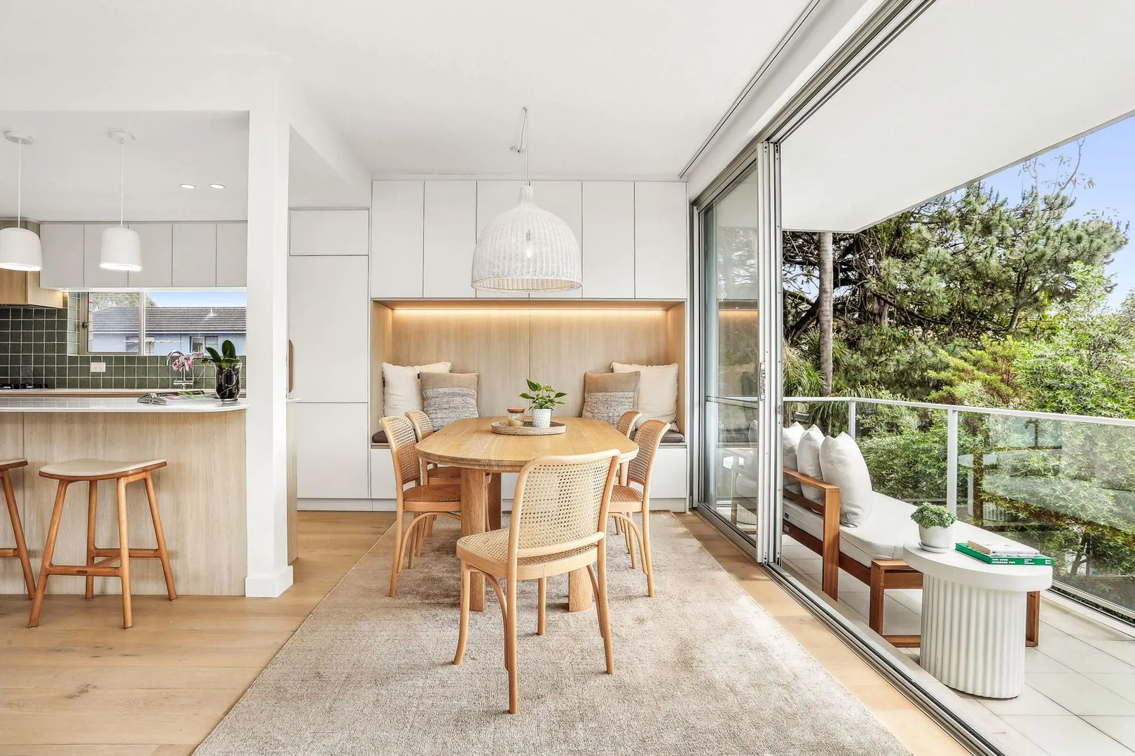This meticulously curated space, where every detail has been carefully crafted to create an oasis of tranquillity. Expansive windows flood the open-concept living area with natural light, highlighting the bespoke finishes, and premium materials such as hand-made tiles, that adorn every corner. The kitchen truly is the heart of the home in this project, with top-of-the-line appliances and sleek countertops, island bench and breakfast bar beckons makes this a diverse space for cooking and entertaining.