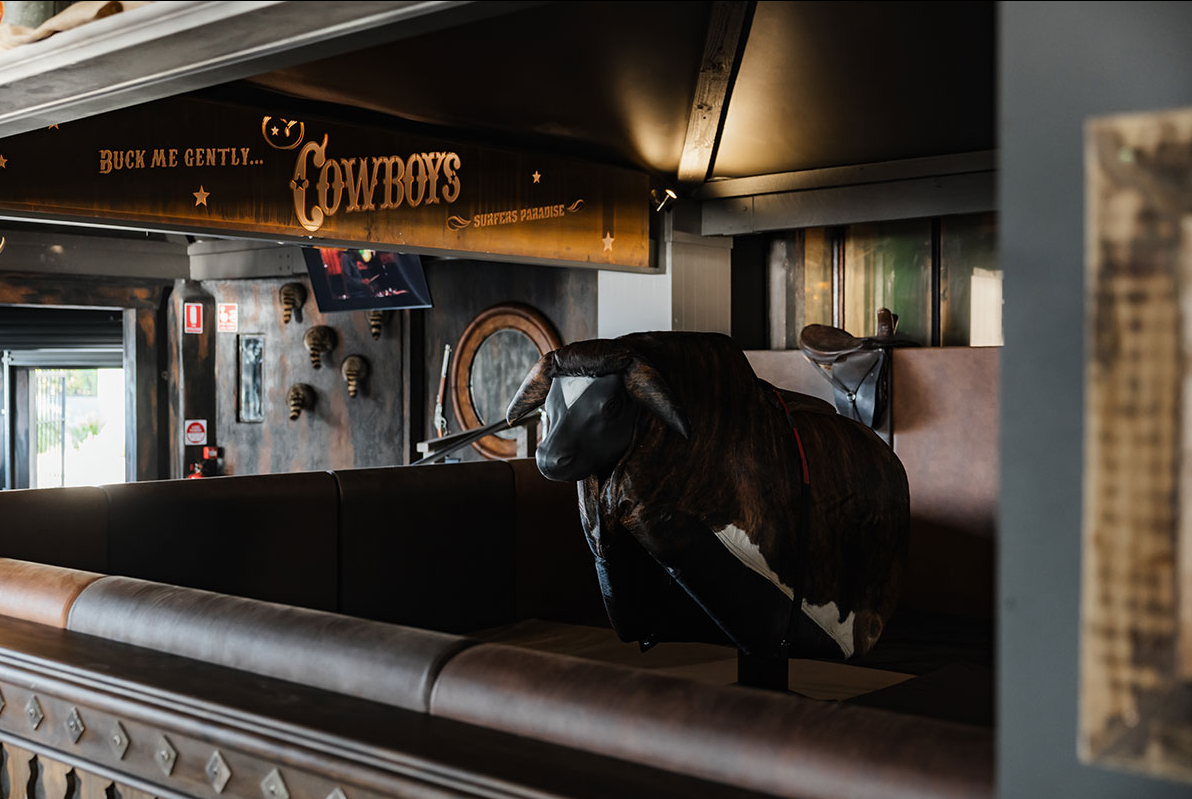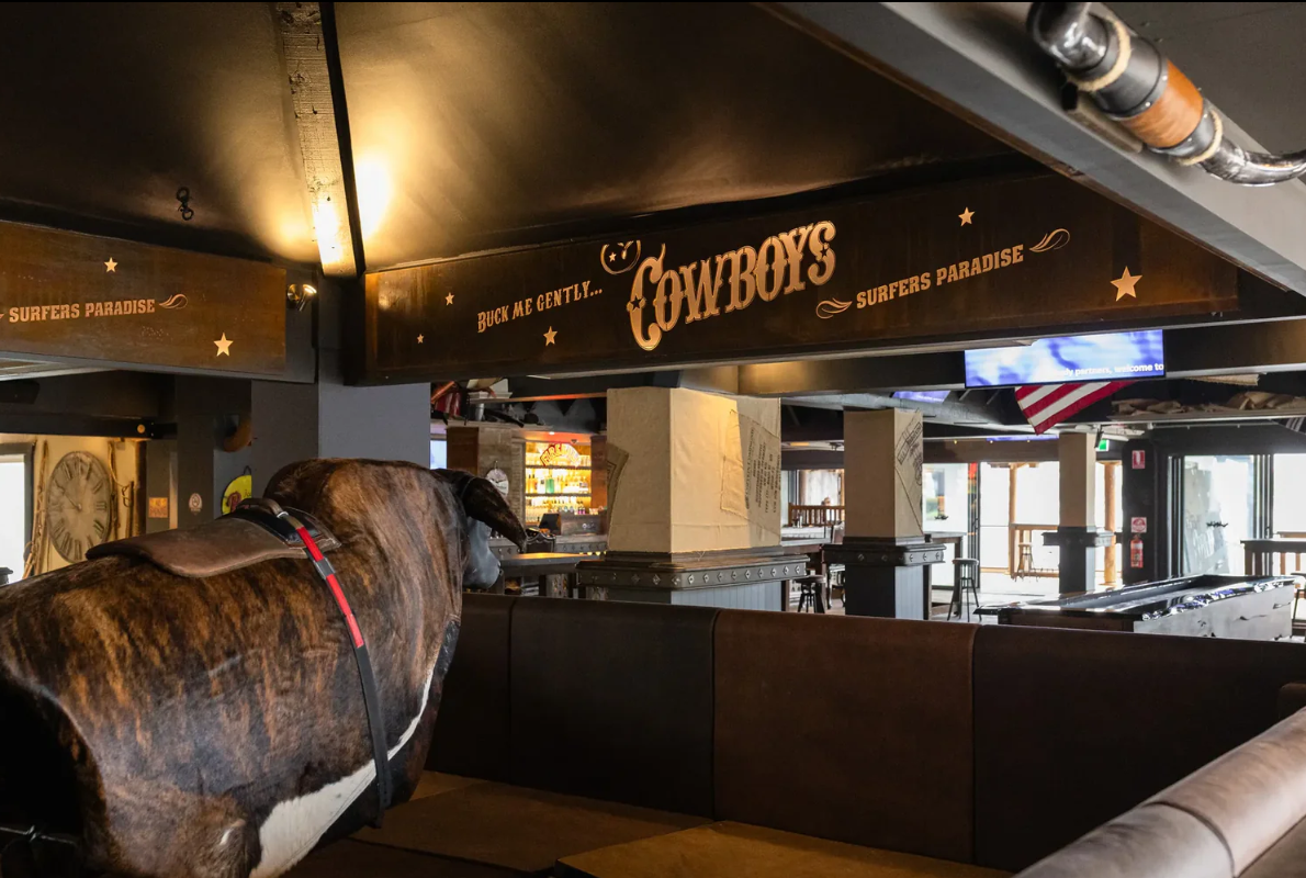 Our scope of works included the full interior fit-out, structural and construction works, installation of custom features, finishes, and coordination of all elements required for a busy hospitality environment. A key feature of the venue was the installation of the mechanical bull, which required specialised installation and structural considerations to ensure safety and durability in a high-use setting.